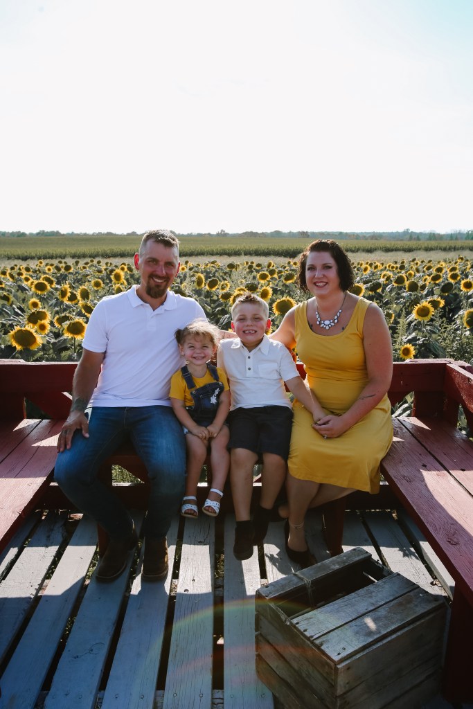 This past August one of my best friend’s moved into her new house and went with a sunflower theme, so of course they needed new family photos in the sunflower field right by their house at a local farm called Jelli’s! This place was awesome and I highly recommend stopping there.